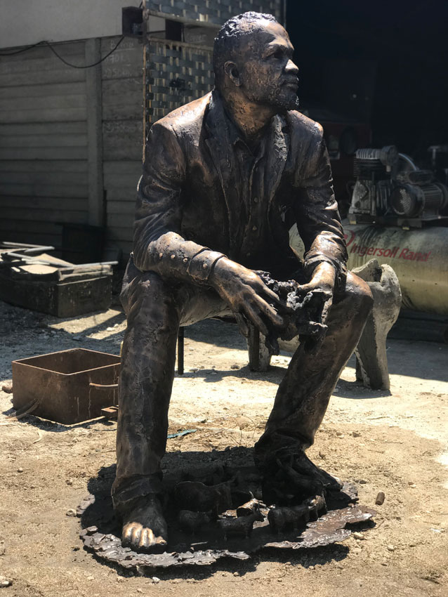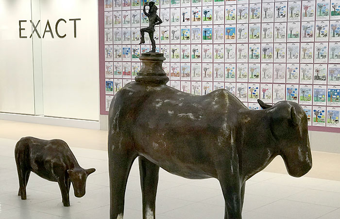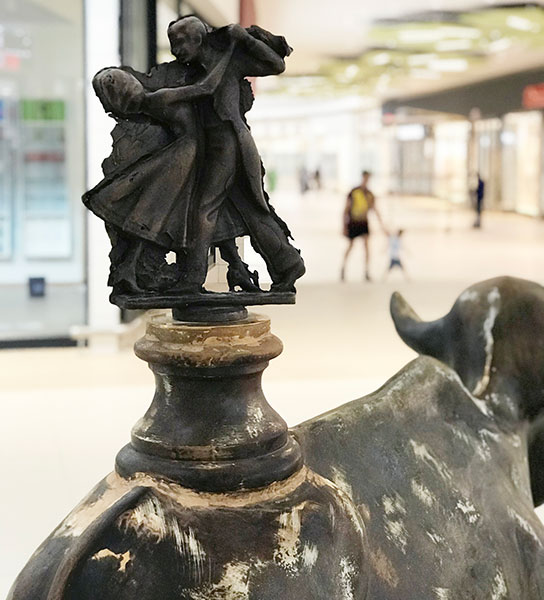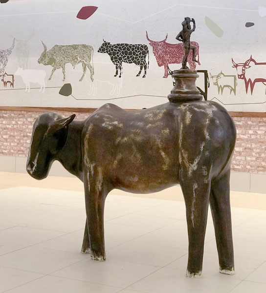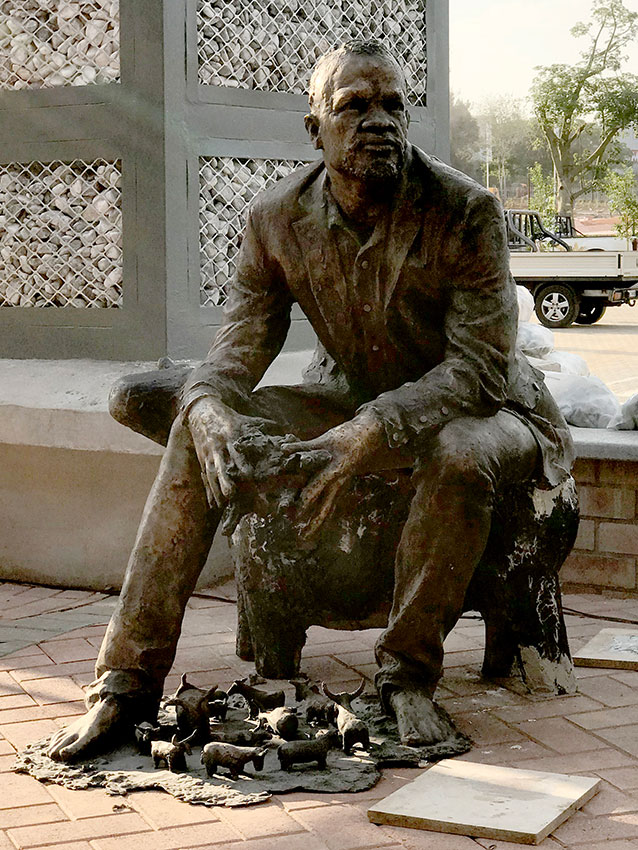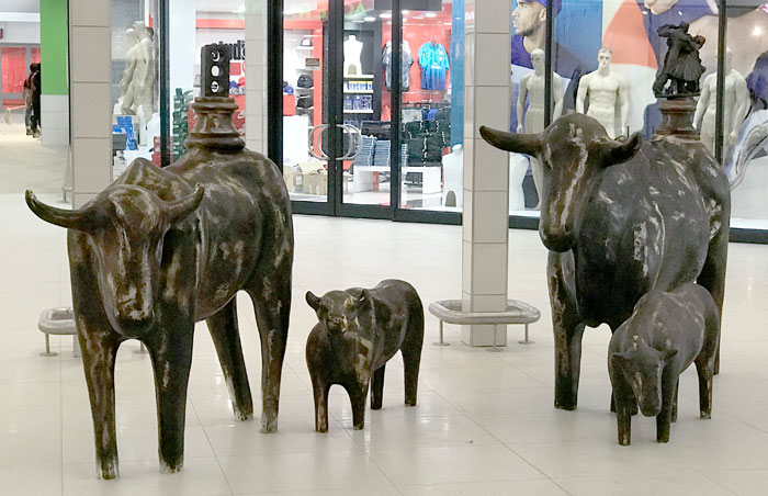 And now 32 Oxen find their home in Groblersdal. Some have unique sculptures on their backs. The brick and stone are bronze castings of actual pieces from the site of the mall pre-construction. The trophies remind us that we all have little dreamers within ourselves that need to play in order to remain vibrantly alive. The other objects that can be seen (the fruit, tractor tyre and pipe) pay homage to the farming community and rich soil of the town.