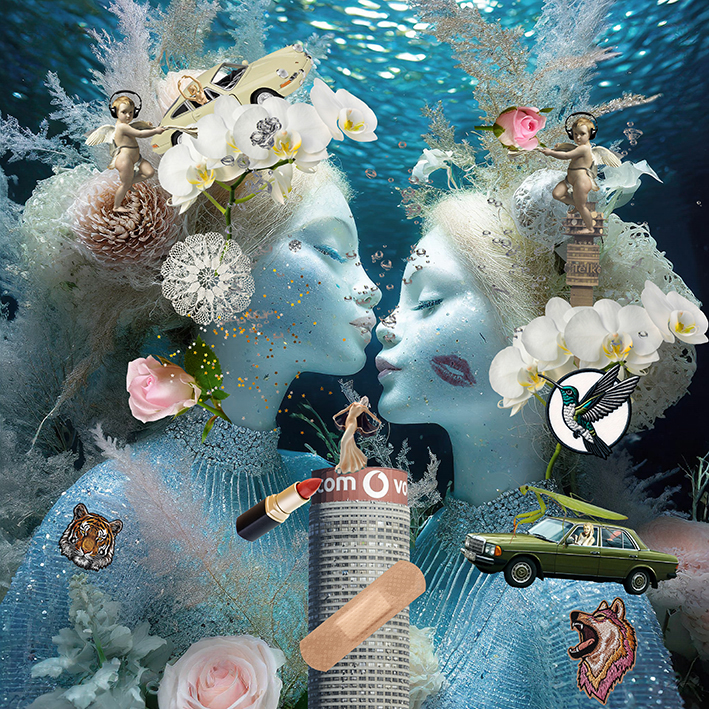 Archival inkjet print on stretched canvas 380 Digital collage and physical collage on a AI prompted image Varied Edition