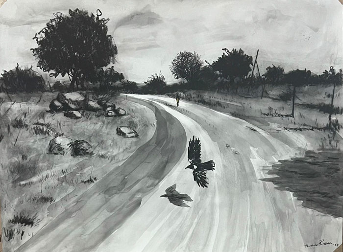 Charcoal, ink & pastel