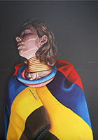 In my series I use a digital medium as well as traditional oil paint to signify the stark contrast of a white skin adorned in the most intricate traditional fashion of various ethnic groups which, by most of the younger black generation, is claimed to be cultural appropriation. I know that with any good intention, I will offend many and will be accused of cultural appropriation, even though I did my research and I truly tried to immerse myself in the history of each ethnic groups traditional clothing. I will always fall short and will always bear the reminder that no amount of appreciation for the traditional clothing or each culture will remove me from being labeled as an ignorant, uneducated, and racist person by my peers. Is freedom of expression then null and void when I raise the question, "Am I African now?" In this body of work, I portray most of SA`s traditional garments (about 9 cultures) as opposed to one because I want to focus on South Africa`s cultures, not just one specific culture. Otherwise, my title would be "am I Xhosa now"? or any of the other cultures represented here. I also felt it would be limiting to focus on one culture seeing as though there are so many with such beautiful garments. Another reason is the fear of repetition, this allows me to focus on multiple clothing styles, I want people to look and see their heritage and relate with it, talk to me about it and teach me what the internet could not teach me. In my research of the history of these dresses have found that the clothing items such as the necklaces and the hats all have a reason or meaning. This made it fascinating for me as a white lady who usually wears clothes just to look presentable to the public. For example, the Xhosa use colourful beadwork and women tend to paint their faces in patterns as a ritual to prepare them for life (this is part of their whole attire). The Zulu people, wear animal skins to show their marital status and leopard skins (king of all predators) to show their royal status. Married women wear circular-shaped hats called izicolo and it protects the wearer from the harsh sun. The Ndebele are known for their thick beaded hoops that they wear around their necks, arms, wrists, and waist - known as isigolwani. Married women wear copper rings called idzilla around their necks. Venda: mature girls wear nwenda around their waist or on one shoulder and it`s made from bright strips of fabric. They also wear beaded necklaces and headbands. The Swazi or Swati have traditional attire for specific gender and age groups. Some are only worn during the Umhlanga (reed dance) or Incwala (ritual of kingship) ceremonies. These are only a few examples of information I have learnt while researching the clothing history. | |||