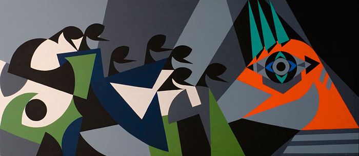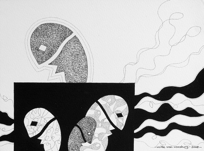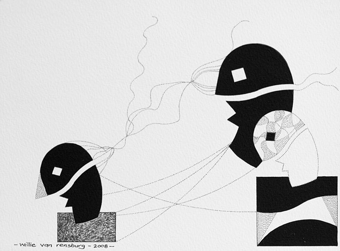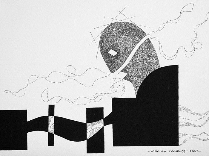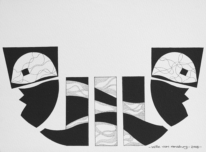 Rite of Passage 2009Solo Exhibition at Arts Association Pretoria Opening Speech: Peter Binsbergen - September 1, 2009 From Piet Mondrain's "Broadway Boogie Woogie" to Marcel Duchamp's "Nude Descending a Staircase", from the Futurists of the past to those of the present, from Europe to Africa and beyond, with a brief stopover in the Rothko Room in the Tate Modern, Willie van Rensburg has managed to encompass it all. Undoubtedly, that word 'Post Modern' pops up again and no matter how ‘old hat’ it may be, contemporary artists always manage to breath new life into a term the Historians and critics deem to be dead. This is Willie van Rensburg at his best. He has managed to appropriate and cross pollinate various cultures world wide to return with a universal Post Africanism with it’s roots planted firmly in the linear narrative, and of course why not, this is after all one of van Rensburg’s trademarks. "I am a Designer; no matter how hard I try, I always find myself back where I started –with the power of line and form." This body of work is titled "Rite of Passage" and according to the artist it marks a certain period in his life, a type of journey but a journey which brings renewal. Inspired by his recent stay at the Cite in Paris one cannot help but to sense a feeling of being out of place. Willie refers to his inspiration as Parisian design. A strange city with language barriers we as South Africans may find intimidating at first. It takes a while to settle and find ones feet, needing to adjust to the fast pace and precision clockwork of a large European city. The large areas of monochromatic colour are of particular interest to me as they reminded me of the cold overcast weather typical of Paris over December. Coupled with this Willie steers us into a direction of African motif. We start to recognize something, amidst the gloomy winter sky, an African design, a pattern or a rhythm. The pigeons, the gargoyles of the Notre Dame, and the buzzing stations of Gare Du Nord and Gare le Est are all Africanized and become a defense mechanism in order to help the artist cope. In a sense he brings the Parisian experience home and one starts to sense an appropriated Battiss, Preller, Skotnes or even a Bettie Cilliers-Barnard. Willie refers to "noise". In this case the "noise" he refers to are the hundreds of people who line the city streets and Brasseries all speaking a language we cannot understand. This linear narrative has been perfectly worked out. He describes sitting in the studio flat in the evenings refining drawing, designs and motifs which would later become the works for this exhibition. We are not at any time confused by what we are seeing. We experience the story as he tells it and even manage to share a stroll down Rue de Ville with him in the early evening feeling that crisp winter chill bite into your neck. He captures the city buzz. We sense the speed of Paris in full swing, we hear the French speaking and see the hundreds pigeons peck at crumbs of the street vendor’s baguettes. This African linear narrative becomes conflicting in terms of trying to relate to a foreign city. Willie has managed to summon the elements of art in order for the viewer to relate to this even if it is in a gallery in South Africa. This is what I mean when I refer to his African linear narrative or Post Africanist visual imagery. It becomes a universal visual language all walks of life can relate to. None of this would be possible if it were not for Willie's strong sense of design. He understands what he is doing and proves it with the dynamic energy and vigor with which he works. I have had the pleasure of knowing Willie van Rensburg for a little more than 10 years and have seen the path he has traveled in order to reach this point. As I have mentioned, this is Willie at his best, even his personality and spontaneous energy is evident in this bulk of work. He has hidden nothing from us and has managed to share his life and persona with us. Therefore I find the title of this exhibition "rite of passage" extremely appropriate. I pay tribute to you this evening my friend. South African art and we, as your friends, have been enriched and inspired for knowing you. | |