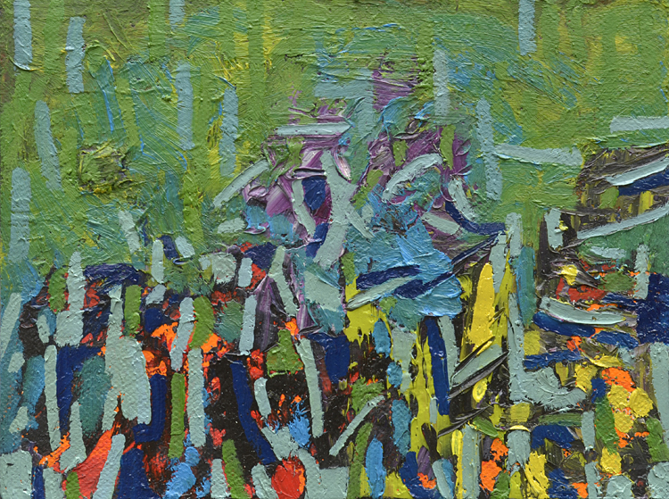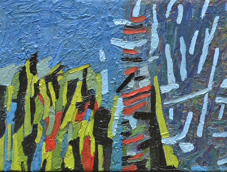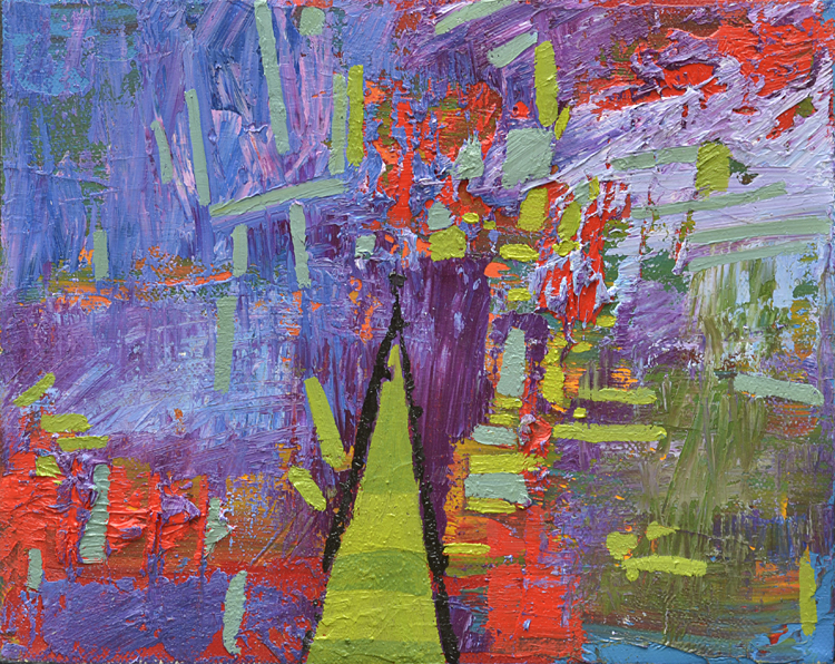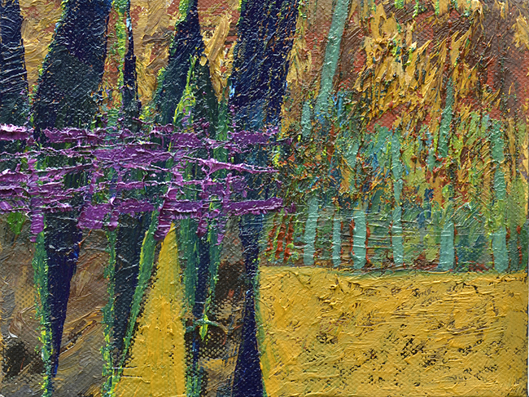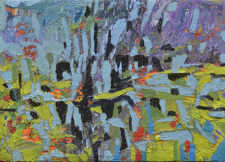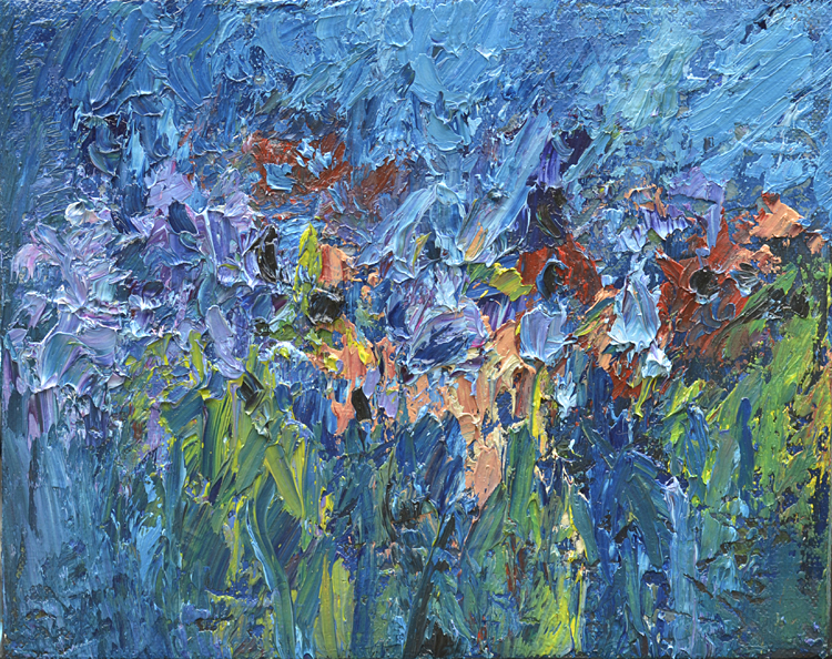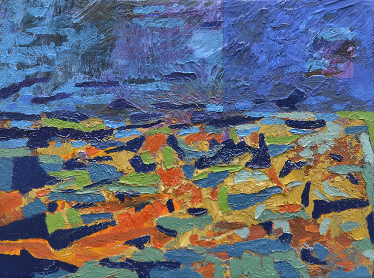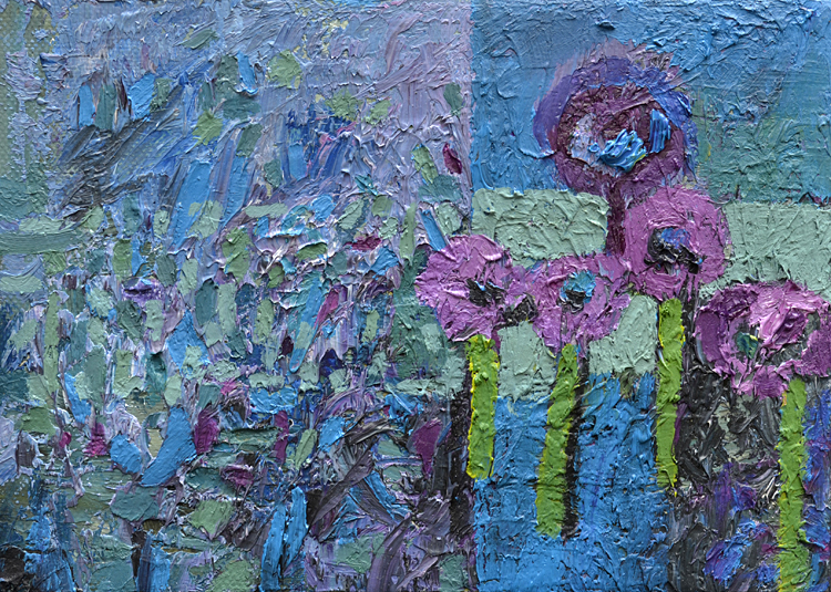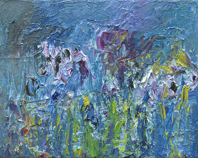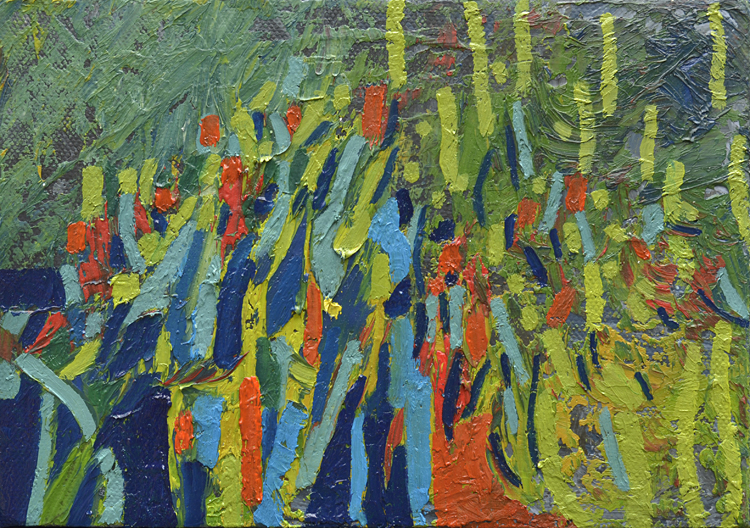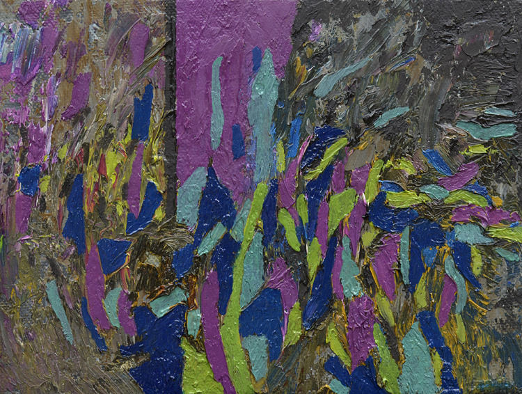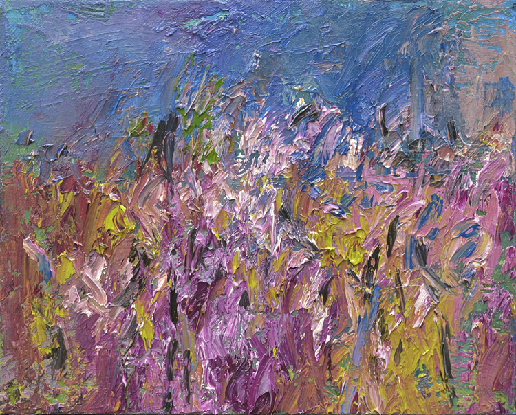 The call seems to be intrinsically related to the mesmerizing pattern of the vegetation. The plants weave in conscious unison, their life-hardy stems stretching upwards, directed and purposeful, while the tendrils of the imagination explore connectedness and contact. Thousands of individuated varieties thrive in the windswept valleys nourished by salty mists and nurtured by the boundless entanglement of being. Away from the contraints of time, there is a synthesis of intentions, a rhythmic meditative focus, an incantation which repeats the motif of the infinite in leafy interlocking hue. It is at this point that we sense before we see; it is the moment that the artist feels moved to capture the reflections on this dreamy threshold of awareness and make the invisible visible.