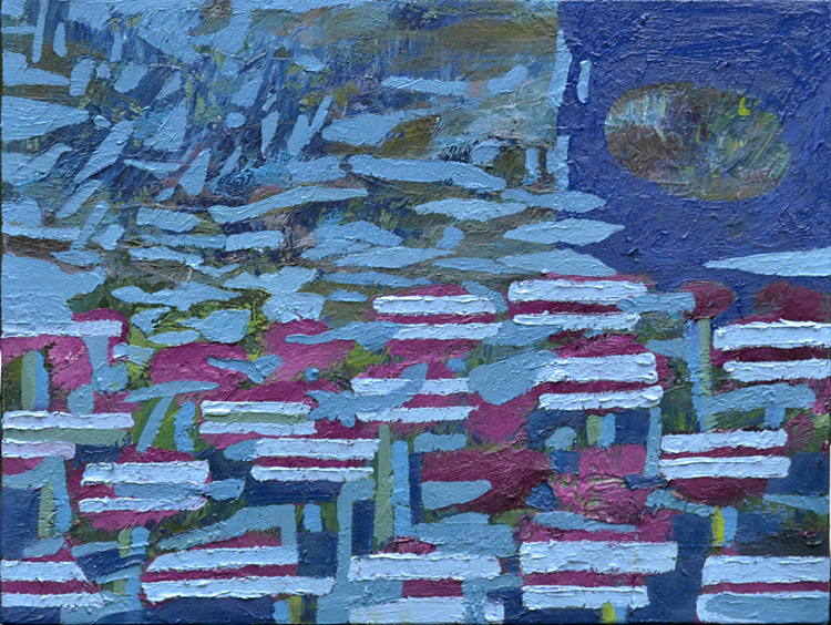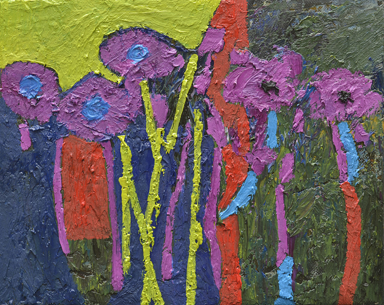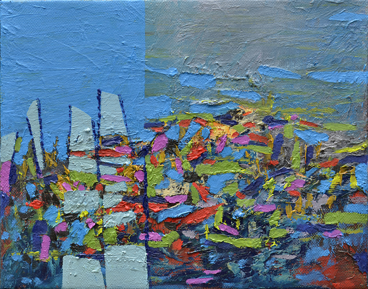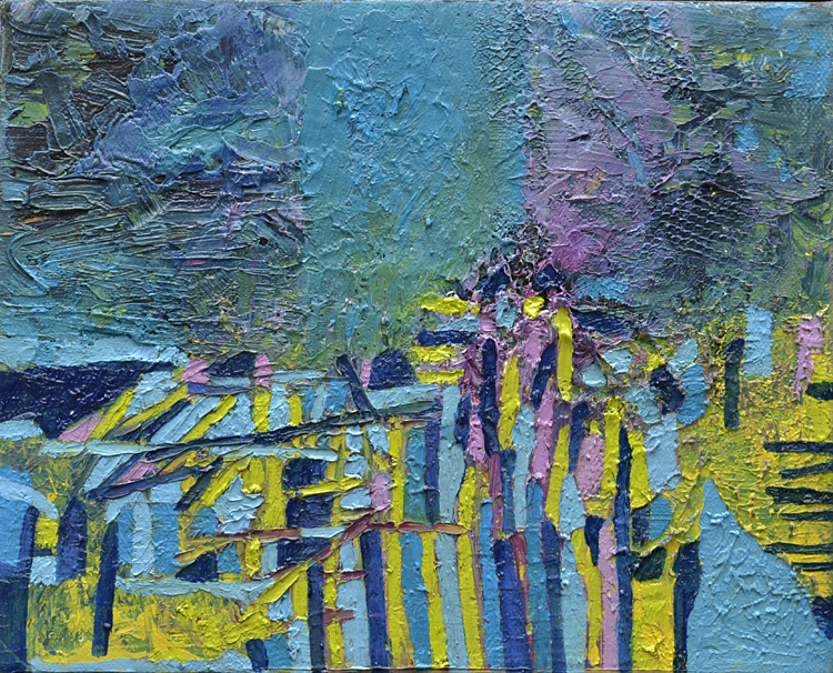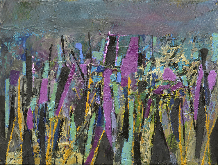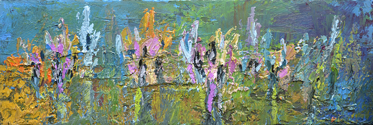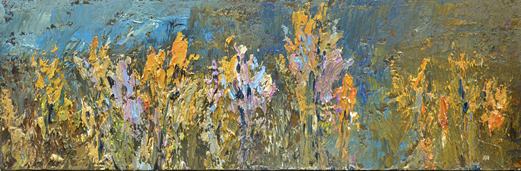 The call seems to be intrinsically related to the mesmerizing pattern of the vegetation. The plants weave in conscious unison, their life-hardy stems stretching upwards, directed and purposeful, while the tendrils of the imagination explore connectedness and contact. Thousands of individuated varieties thrive in the windswept valleys nourished by salty mists and nurtured by the boundless entanglement of being. Away from the contraints of time, there is a synthesis of intentions, a rhythmic meditative focus, an incantation which repeats the motif of the infinite in leafy interlocking hue. It is at this point that we sense before we see; it is the moment that the artist feels moved to capture the reflections on this dreamy threshold of awareness and make the invisible visible.